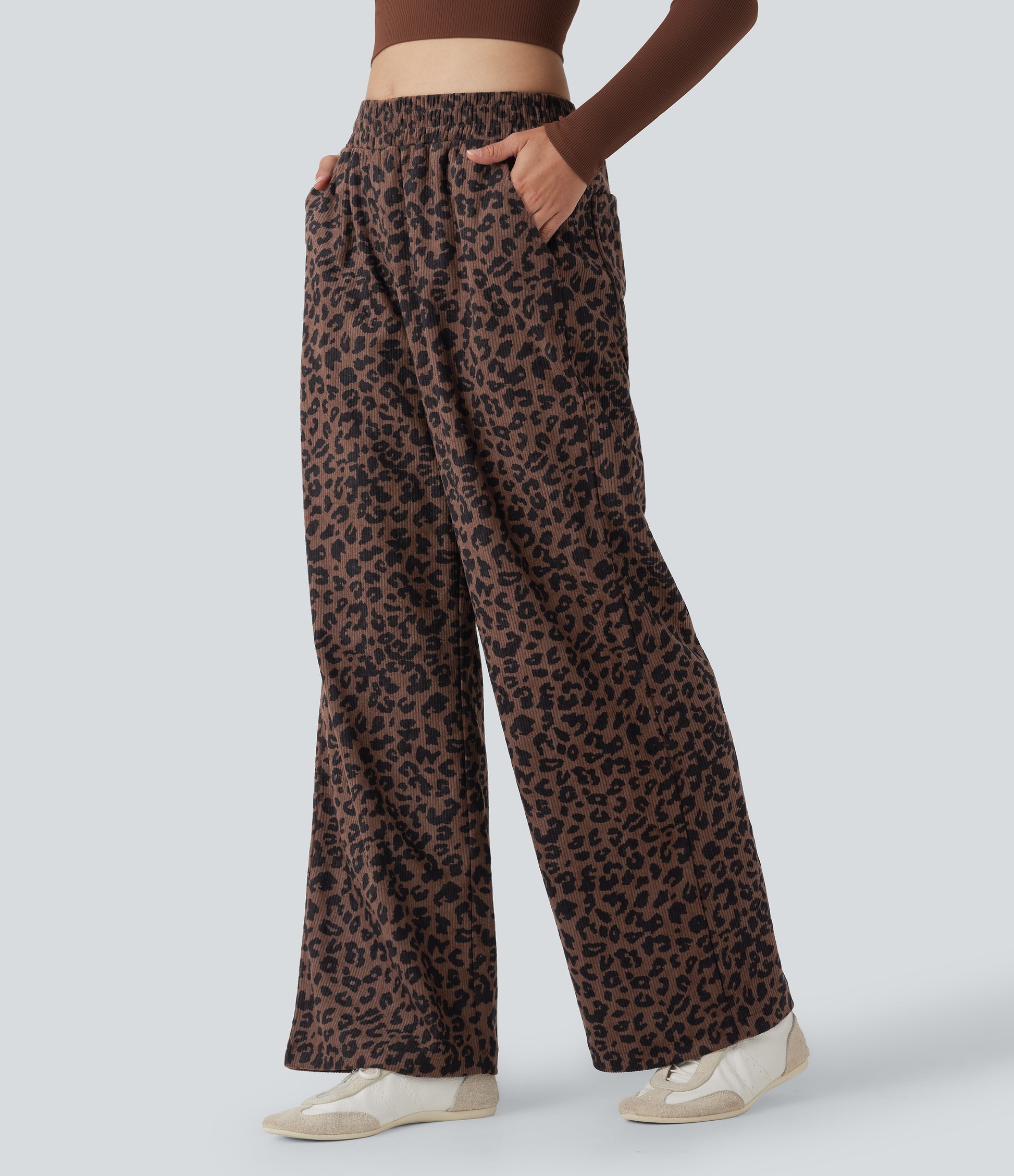 Estos pantalones de pana con estampado de leopardo son perfectos para tus actividades casuales. Su diseño de cintura alta y plana realza la silueta, mientras que el corte holgado y el estiramiento bidireccional garantizan máxima comodidad y libertad de movimiento. Con bolsillos traseros prácticos, son fáciles de poner y quitar y cuentan con longitud al piso, ideal para un look relajado y estilizado.